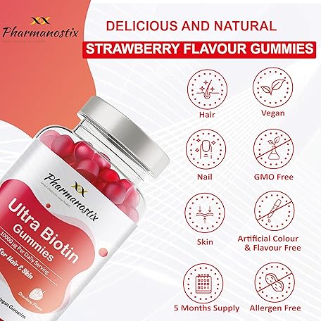 Sản phẩm Pharmanostix Ultra Biotin 5000mcg Vegan Gummies - 10000mcg Per Daily Dose - for Hair, Skin and Nail Growth Support - 150 Natural Strawberry Flavour - 75 Days Supply - for Men and Women đang được bán với giá ưu đãi là $21.5057 tại nước Anh.