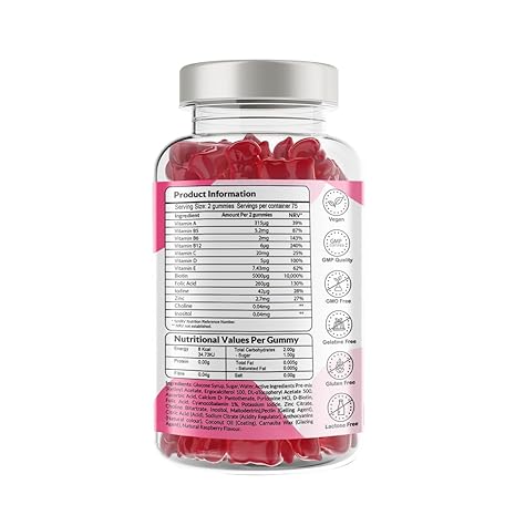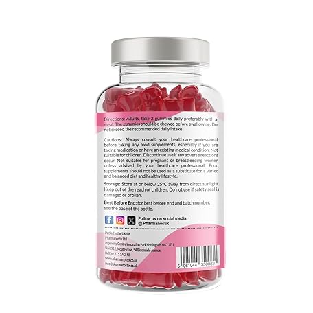 Thông tin sản phẩm Pharmanostix Ultra Hair, Skin & Nail Gummies - Biotin 5000μg, Zinc, Vitamin D3, Choline, Vitamin C - 150 Vegan Raspberry Flavour Gummies - Gluten, Dairy, Soy & GMO Free