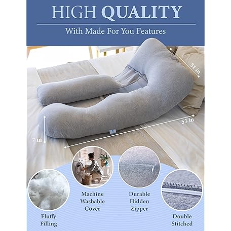 Thông tin sản phẩm PharMeDoc Pregnancy Pillow - U-Shape Full Body Pillow and Maternity Support with Detachable Extension - Support for Back, Hips, Legs, Belly for Pregnant Women