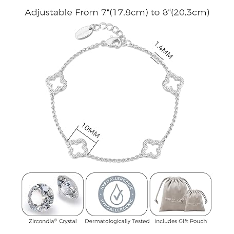 Thương hiệu Philip Jones là cái tên nổi tiếng được rất nhiều khách hàng trên thế giới chọn lựa. Với kiểu dáng đẹp mắt, sang trọng, sản phẩm Philip Jones Silver Plated Clover Bracelet Created with Zircondia® Crystals là sự lựa chọn hoàn hảo nếu bạn đang tìm mua một món cho riêng mình.