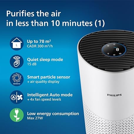 Thông tin sản phẩm Philips 1000i Series Air Purifier - Removes Germs, Dust and Allergens in Rooms up to 78 m², Sleep Mode (AC1715/30)