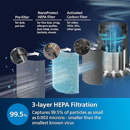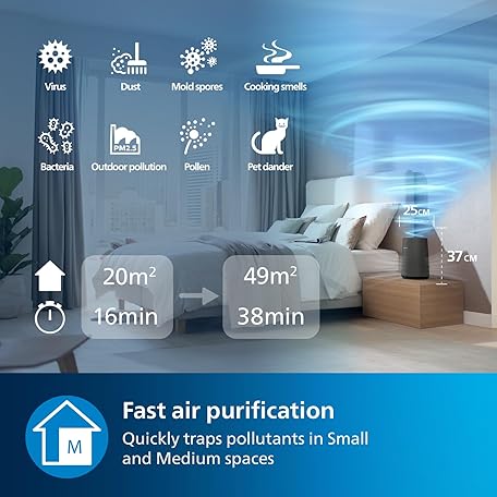 Thông tin sản phẩm Philips 800i Series Compact Air Purifier, 49m2, HEPA & Activer Carbon Filter, Removes Up To 99,5% Of The Particles & Aerosols From The Air*(1), Connected with Air+ App, Black (AC0850/31)