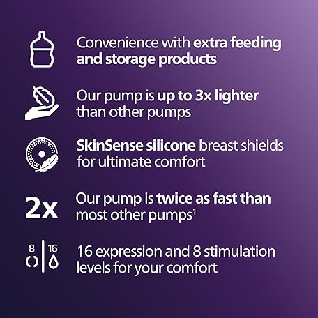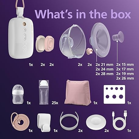 Thông tin sản phẩm Philips Avent Hands-Free Breast Pump Starter Set, Hospital-Strength Motor, Mimics Baby's Drinking Rhythm, Pumps up to 85 Times per Minute, with Feeding and Storage Products, Model SCD553/11
