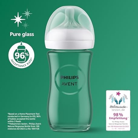 Sản phẩm Philips Avent Natural Response Glass Baby Bottle - 240ml Baby Milk Bottle, BPA Free for Newbown Babies 1 Month+ (Model SCY933/01) đang được bán với giá ưu đãi là $20.3394 tại nước Anh.