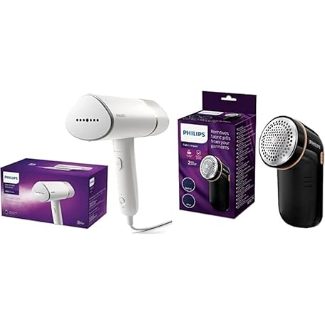 Sản phẩm Philips Handheld Steamer 3000 Series, Compact and Foldable, 1000W, up to 20g/min, STH3020/16, White & Philips Fabric Shaver, quick and effective removal of pills and bobbles,Black - GC026/80 đang được bán với giá ưu đãi là $80.6491 tại nước Anh.