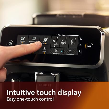 Thông tin sản phẩm Philips Series 3200 Fully automatic espresso machines, 4 Beverages, Classic Milk Frother, Intuitive Touch Display, 100% ceramic grinders, My Coffee Choice, AquaClean filter, Glossy Black (EP3221/40)