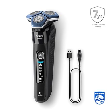 Thông tin sản phẩm Philips Shaver Series 7000 - Wet & Dry Mens Electric Shaver with SkinIQ Technology, Razor with Pop-up Trimmer, Charging Stand, Travel Case, Quick Clean Pod and Quick Clean Cartridge (Model S7886/55)