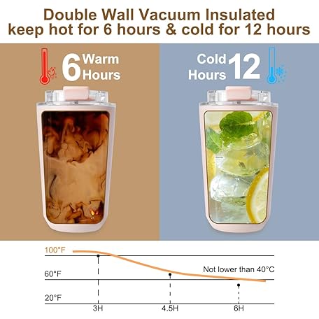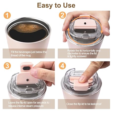 Thông tin sản phẩm Philorn Pink Coffee Tumbler - 12 OZ Insulated Coffee Mug with Lid, Leak Proof Thermo Cup for Hot and Iced Drinks, Stainless Steel Vacuum Cup with Double Wall