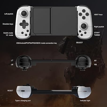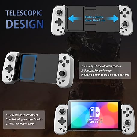 Thông tin sản phẩm Phone Game Controller for iPhone/Android, MFi Wireless Mobile Gamepad for iOS/Switch/PC/PS/Xbox/Cloud Gaming Stretchable Bluetooth Joystick for iPhone 15 14 13/Plus/Pro/Max, Direct Play (White)