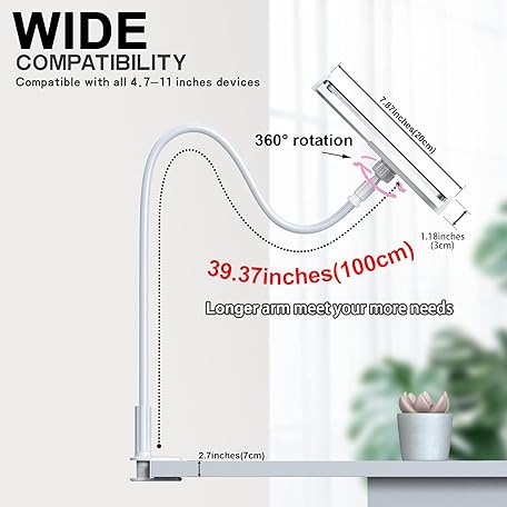 Thông tin sản phẩm Phone Holder for Bed,360 Flexible Lazy Tablet Holder for Bed,with Adjustable 39.4" Long Arm Clamp Bracket Mount Phone Stand for 4.7~10.5" iPhone/iPad Air/Pro/mini/Tablet/Switch,White