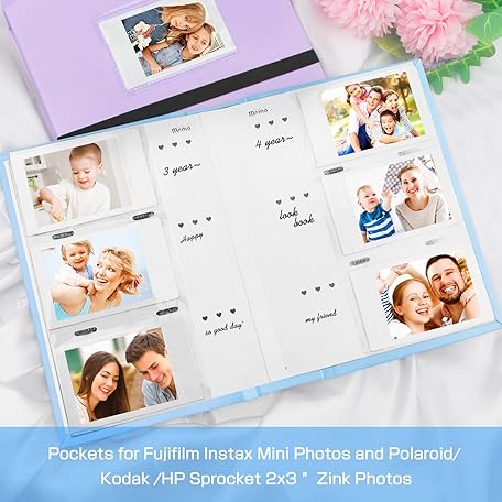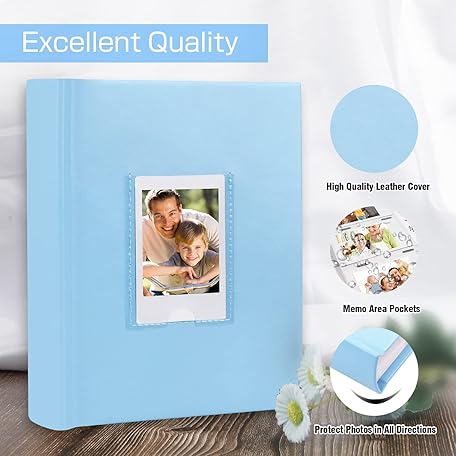 Thông tin sản phẩm Photo Album for Fujifilm Instax Mini Camera, 180 Pockets Photo Album with Writing Space for Polaroid, Leather Cover, 2x3 for Instax Mini 12 11 9 40 8 7 Evo LiPlay Instant Camera (Blue)