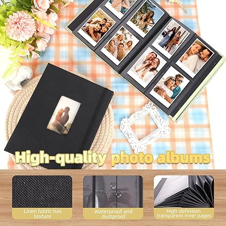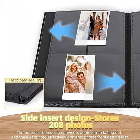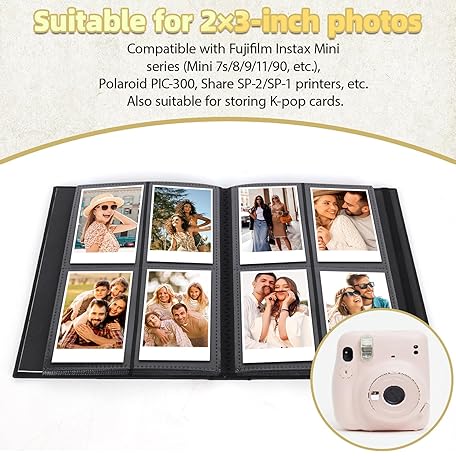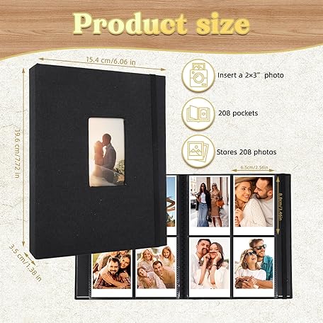 Thông tin sản phẩm Photo Album With 208 Pockets For 3-Inch Photos, Insert-Style Photo Album With Diy Front Window, Compatible With Polaroid Film, Fujifilm Instax Mini 8/9/90/11 K-Pop Cards (Black)