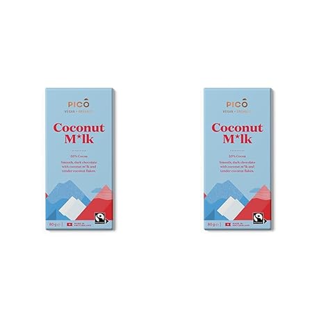 Pico Chocolate - Coconut Milk Chocolate Vegan Bars - 55% Cocoa with Tender Coconut Flakes, Creamy & Organic Swiss Dark Chocolate - 1 x 80g (Pack of 2)