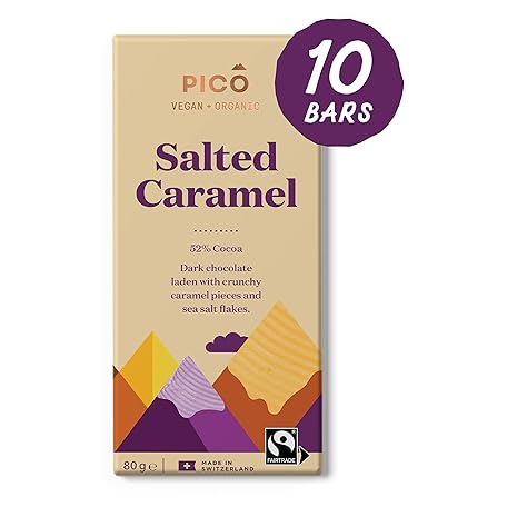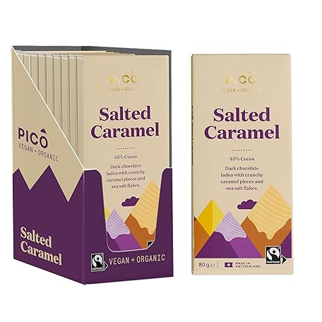 Sản phẩm PICO Salted Caramel Chocolate Vegan Bars- 45% Cocoa Organic with Sea Salt Flakes & Crunchy Caramel Pieces, Swiss Dark Chocolate - 10 x 80g đang được bán với giá ưu đãi là $45.7691 tại nước Anh.