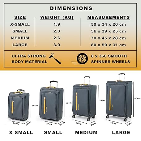 Mặt hàng này hiện nay đang có các phân loại Small 56x39x25, Medium 69cm, Large 78cm, Carry On 50x34x20, Black & Grey, Grey & Orange, Navy & Grey, Purple & Light Grey, cho bạn nhiều sự lựa chọn phù hợp với cá tính và sở thích riêng của mình. Dự kiến hàng sẽ về đến Việt Nam từ 28-12-2025 đến 03-01-2026 nếu quý khách thực hiện thanh toán trong hôm nay.