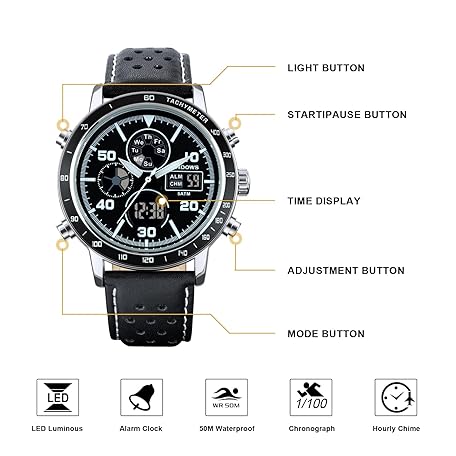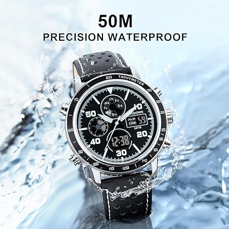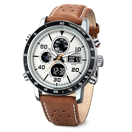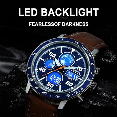 Sản phẩm PINDOWS Watches for Men, Men Military Digital Analog Casual Dual Time Leather Wristwatch Multifunctional Fashion Watch with LED Backlight Alarm Stopwatch Calendar đang được bán với giá ưu đãi là $32.9725 tại nước Anh.
