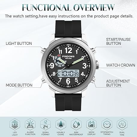 Sản phẩm PINIDOUS Men Watches for Men's Military Digital Watches Analog Quartz Waterproof Watch Sport Outdoor Multifunctional Stainless Steel Classic Stylish Fashion Casual Business Wristwatch đang được bán với giá ưu đãi là $40.0248 tại nước Anh.