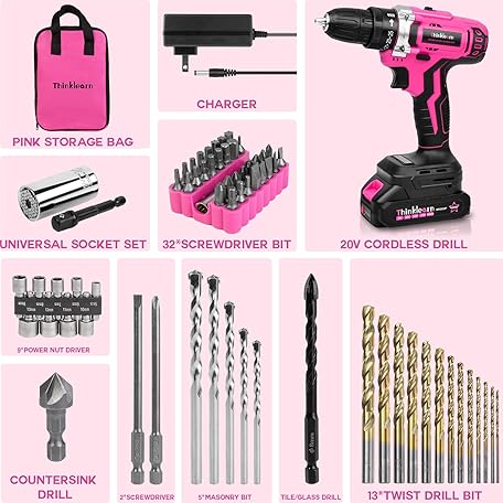 Thương hiệu ThinkLearn là cái tên nổi tiếng được rất nhiều khách hàng trên thế giới chọn lựa. Với kiểu dáng đẹp mắt, sang trọng, sản phẩm Pink Cordless Drill Set, 20V Lithium-ion Power Drill Set for Women with 67Pcs Driver Bits, 3/8"Keyless Chuck, 25+1 Position, 2.0Ah Battery, Charger and Storage Bag Included là sự lựa chọn hoàn hảo nếu bạn đang tìm mua một món cho riêng mình.