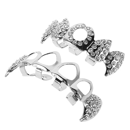 PLAFOPE Silver Hollow Out Teeth Grill Vampire Fang Style for Halloween Cosplay Party Fit Copper Rhinestone Tooth Jewelry with Sharp Design