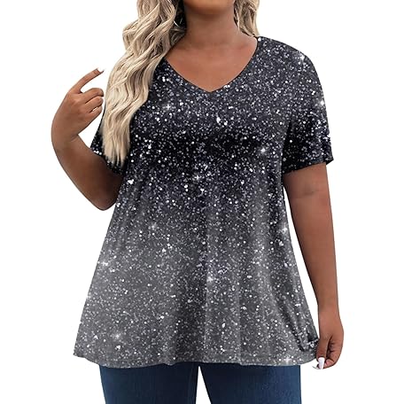 Plus Size Tops for Women Plus Size Crew Neck Pullover Tops Gradient Short Sleeve T Shirts Comfy Dressy Blouses