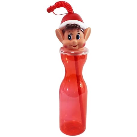 Sản phẩm PMSINT Fun & Unique Clear Red Plastic Bottle With Elf Head On Top & Flexistraw - 500 ml - Durable Material - Perfect for Kids đang được bán với giá ưu đãi là $8.7091 tại nước Anh.