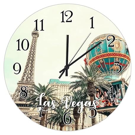 PODbyyou City in Nevada State Wall Clock USA City Casino Las Vegas Wall Clocks Farmhouse Battery Operated Wall Clocks Country Souvenir Gift Round Clock for Bedroom Kitchen Living Room 15inch