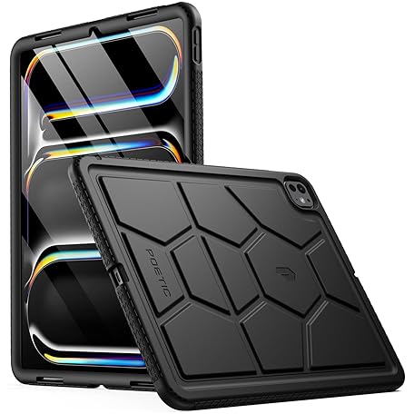 Poetic TurtleSkin Case for iPad Pro 13 Inch 2024 M4 7th Gen, Heavy Duty Shockproof Rugged Kids Friendly Drop Protection Silicone Cover Case, Black
