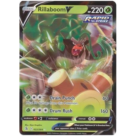 Pokemon Single Card RILLABOOM V 022/264 FUSION STRIKE