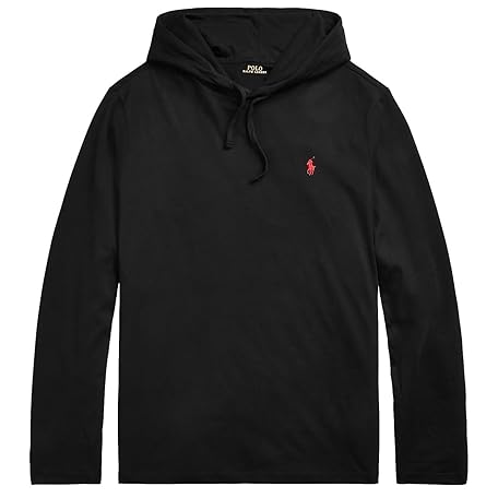 POLO RALPH LAUREN Men's Classic Fit Soft Touch Long-Sleeve Tee, Hooded Polo Black, Large