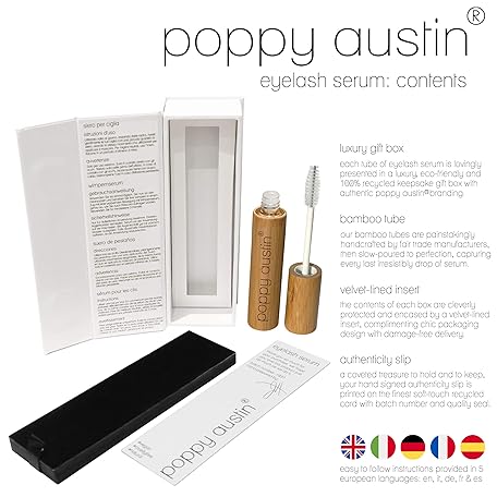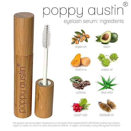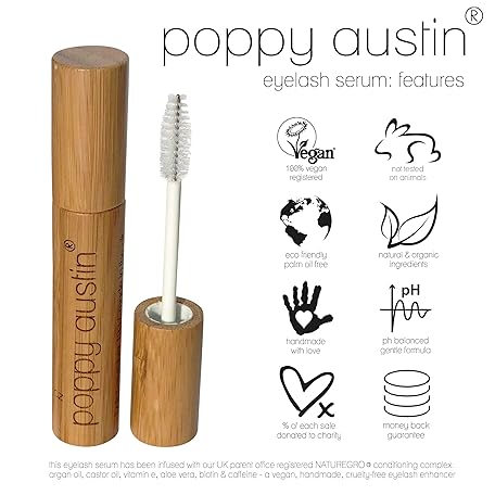 Thông tin sản phẩm Poppy Austin 9g Eye Lash Serum - Premium Eyelash Growth Serum with Argan Oil, Castor Oil, Caffeine, Vitamin E, Aloe Vera - Vegan, Cruelty-Free Eyelash Serum, Growth Enhancer for Lashes, Brows