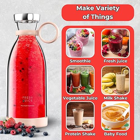 Thông tin sản phẩm Portable Blender for fresh juices and Smoothies 350ML, Bottle Mini Blender Rechargeable Smoothie Maker with Wireless Charging and Travel Lid, Perfect for Travel, Gym, Office (Pink)