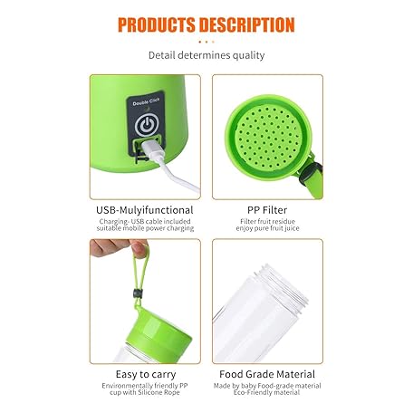 Portable Electric Blender Juicer Fruit Blender Smoothie Maker Milk shaker Baby Food Protien shake USB Rechargeable Travel Gym Camping (Blue)
