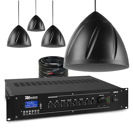 Thông tin sản phẩm Power Dynamics Pendant Speaker System, Bluetooth Commercial Sound System with Mixer-Amp, 4x 5.25-inch Hanging PA Speakers, Warehouse, Restaurant & Retail Audio Installation, Black