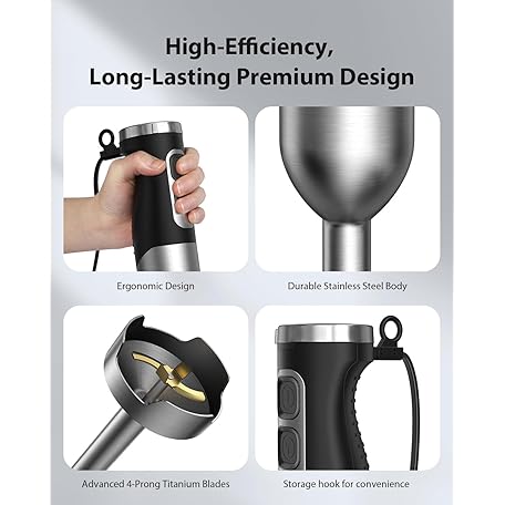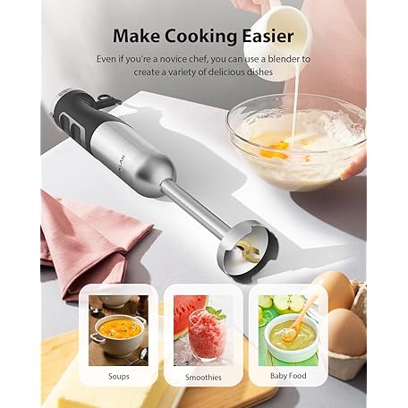 Thông tin sản phẩm Powerful Immersion Blender 1000W, 2025 Hand Blender with 25 Speed Copper Brushless Motor and Heavy Duty, 4 in 1 Hand Mixer with Chopper, Whisk, Beaker and