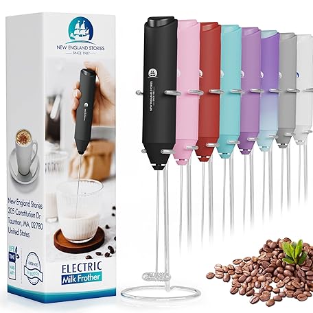 Powerful Milk Frother Handheld Foam Maker, Mini Whisk Drink Mixer for Coffee, Cappuccino, Latte, Matcha, Hot Chocolate, With Stand, Black