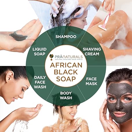 Thông tin sản phẩm PraNaturals 100% Organic Raw African Black Soap 200g, Ethically Sourced and Handcrafted in Ghana, For All Skin Types, Detoxifying and Anti-Ageing All Pure Natural, Vegan, Unprocessed