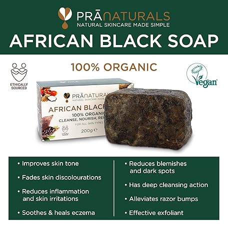 Sản phẩm PraNaturals 100% Organic Raw African Black Soap 200g, Ethically Sourced and Handcrafted in Ghana, For All Skin Types, Detoxifying and Anti-Ageing All Pure Natural, Vegan, Unprocessed đang được bán với giá ưu đãi là $14.7477 tại nước Anh.