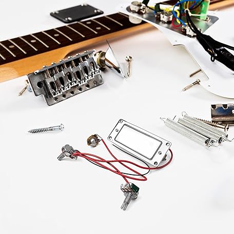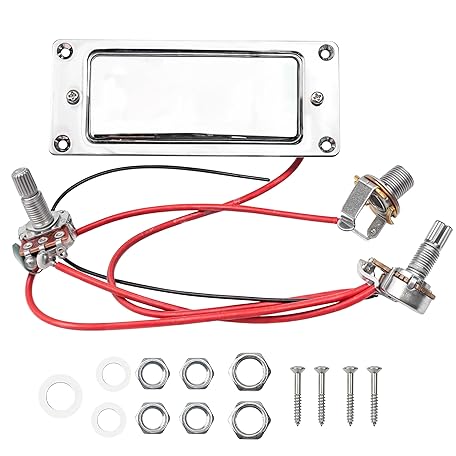 Pre-Wired Guitar Pickups, Humbuckers Wiring Harness Parts For Cigar Box Electric Guitar, Volume Tone Pots 500K Jack and Double Dual Closed Coil Electronics Kit, Chrome Musical Instrument For Guitarist