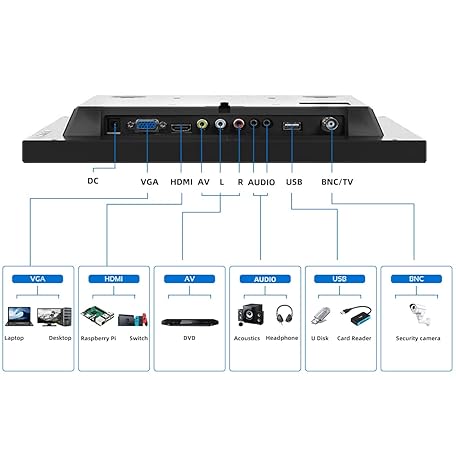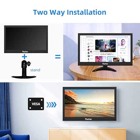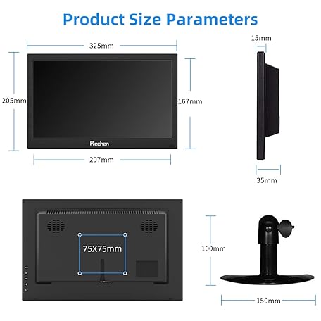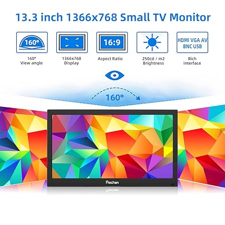 Thông tin sản phẩm Prechen Portable Small Monitor 13.3 inch 1366x768 Mini PC Display with HDMI VGA AV BNC USB Intput for PC Laptop PS4 Xbox Ras Pi LED Computer Monitor, Built-in Speaker, Mountable