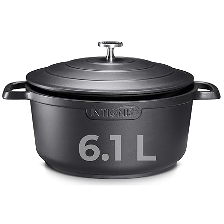 Premium 28cm/ 6.1 L Non Stick Casserole Dish with Lid - Versatile Oven to Hob Heavy Duty - Induction Ready, German Greblon Coating for Chemical Free Cooking - Matt Black