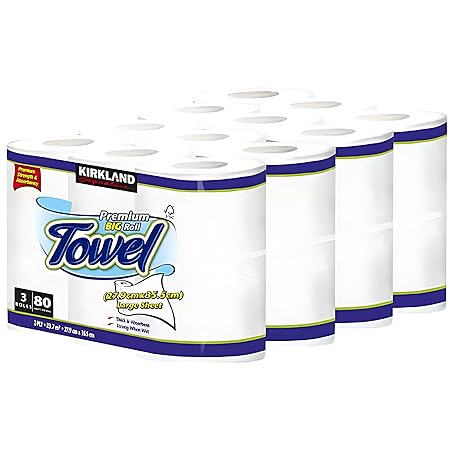 Thông tin sản phẩm Premium Big ROLL Compatible with Kirkland Signature Kitchen Roll Towel, 2 Ply 12 x 80 Sheet Pack, Fabric, White,