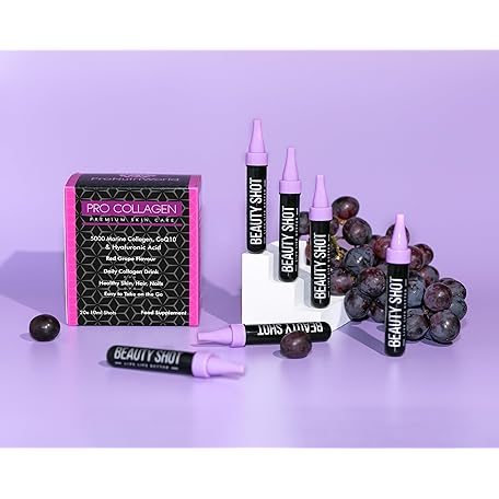 Thông tin sản phẩm Premium Liquid Marine Collagen Shots 5000mg Hydrolysed Fish Collagen Peptides + Hyaluronic Acid, CoQ10 & Vitamin C – Grape Flavour – Skin, Hair, Nails & Joints Beauty Drink (10 ml Shots)