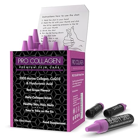 Sản phẩm Premium Liquid Marine Collagen Shots 5000mg Hydrolysed Fish Collagen Peptides + Hyaluronic Acid, CoQ10 & Vitamin C – Grape Flavour – Skin, Hair, Nails & Joints Beauty Drink (10 ml Shots) đang được bán với giá ưu đãi là $48.0254 tại nước Anh.
