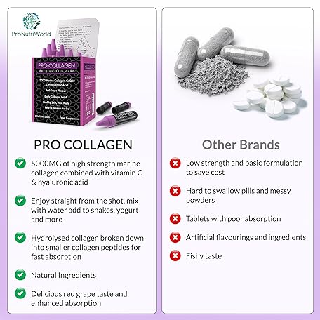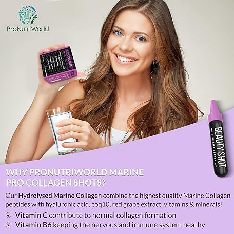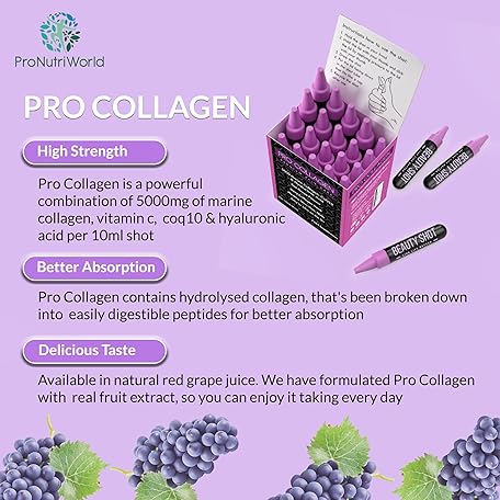 Thương hiệu ProNutriWorld là cái tên nổi tiếng được rất nhiều khách hàng trên thế giới chọn lựa. Với kiểu dáng đẹp mắt, sang trọng, sản phẩm Premium Liquid Marine Collagen Shots 5000mg Hydrolysed Fish Collagen Peptides + Hyaluronic Acid, CoQ10 & Vitamin C – Grape Flavour – Skin, Hair, Nails & Joints Beauty Drink (10 ml Shots) là sự lựa chọn hoàn hảo nếu bạn đang tìm mua một món cho riêng mình.