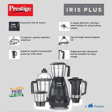 Thương hiệu Prestige là cái tên nổi tiếng được rất nhiều khách hàng trên thế giới chọn lựa. Với kiểu dáng đẹp mắt, sang trọng, sản phẩm Prestige IRIS Plus 750 watt mixer grinder là sự lựa chọn hoàn hảo nếu bạn đang tìm mua một món cho riêng mình.