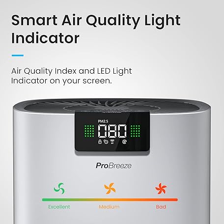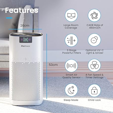 Sản phẩm Pro Breeze Ultra-Powerful Air Purifier for Large Rooms (1500 sq ft) – CADR of 460 m³/h – H13 HEPA Filter, UV-Cleansing Light, Ionizer, 3 Layer Filtration System, Captures 99.95% of Airborne Particles đang được bán với giá ưu đãi là $173.2119 tại nước Anh.