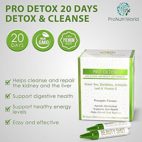 Sản phẩm Pro Detox Liver Cleanse & Kidney Support Shots 20×10ml Pineapple Flavour Drink with Artichoke, Dandelion, Chicory & Green Tea Natural Liver Detox & Repair Supplement for Digestion, Bloating & Energy đang được bán với giá ưu đãi là $46.5212 tại nước Anh.