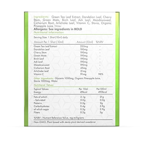 Thông tin sản phẩm Pro Detox Liver Cleanse & Kidney Support Shots 20×10ml Pineapple Flavour Drink with Artichoke, Dandelion, Chicory & Green Tea Natural Liver Detox & Repair Supplement for Digestion, Bloating & Energy