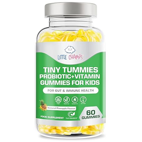 Probiotic & Vitamin Gummies for Kids – 60 Multivitamin Gummies | Kids probiotic for Gut, Immunity, Mental Performance & Energy | Vegan, Natural Pineapple Flavour - by NATURES ZEST