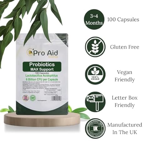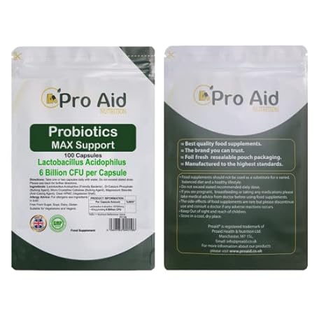 Sản phẩm Probiotics Capsules Max Support 6 Billion CFU 100 Pack by ProAid | Healthy Gut | Digestion Support | Bio Cultures | Premium Vegetarian Capsules đang được bán với giá ưu đãi là $11.554 tại nước Anh.